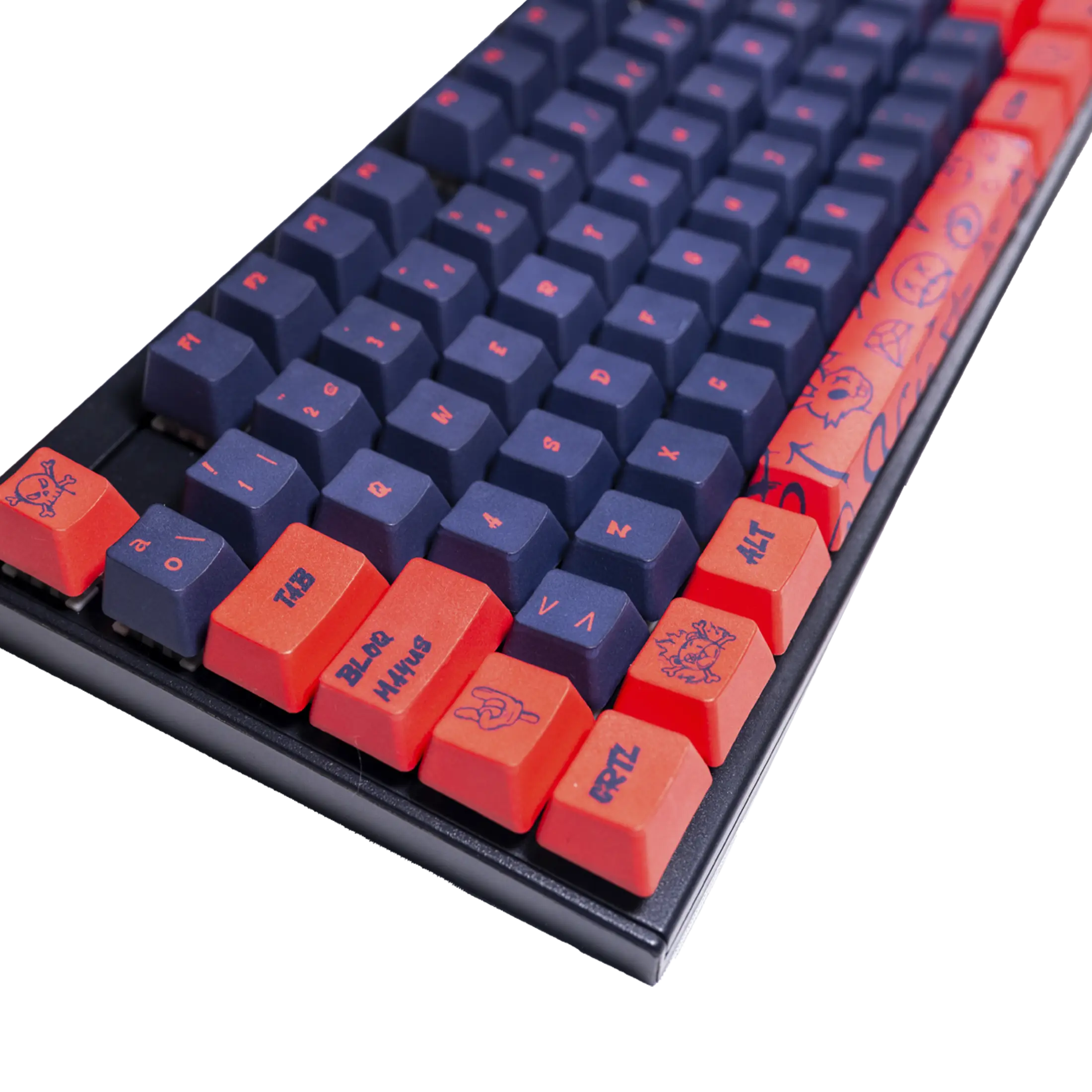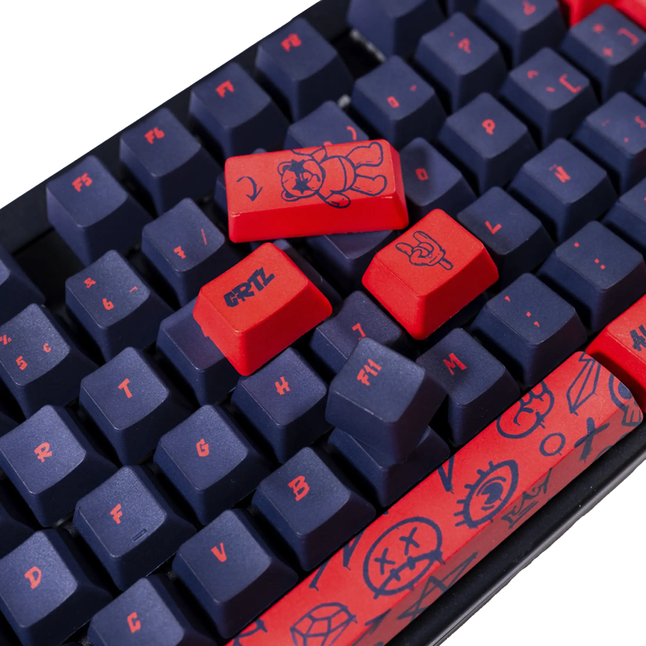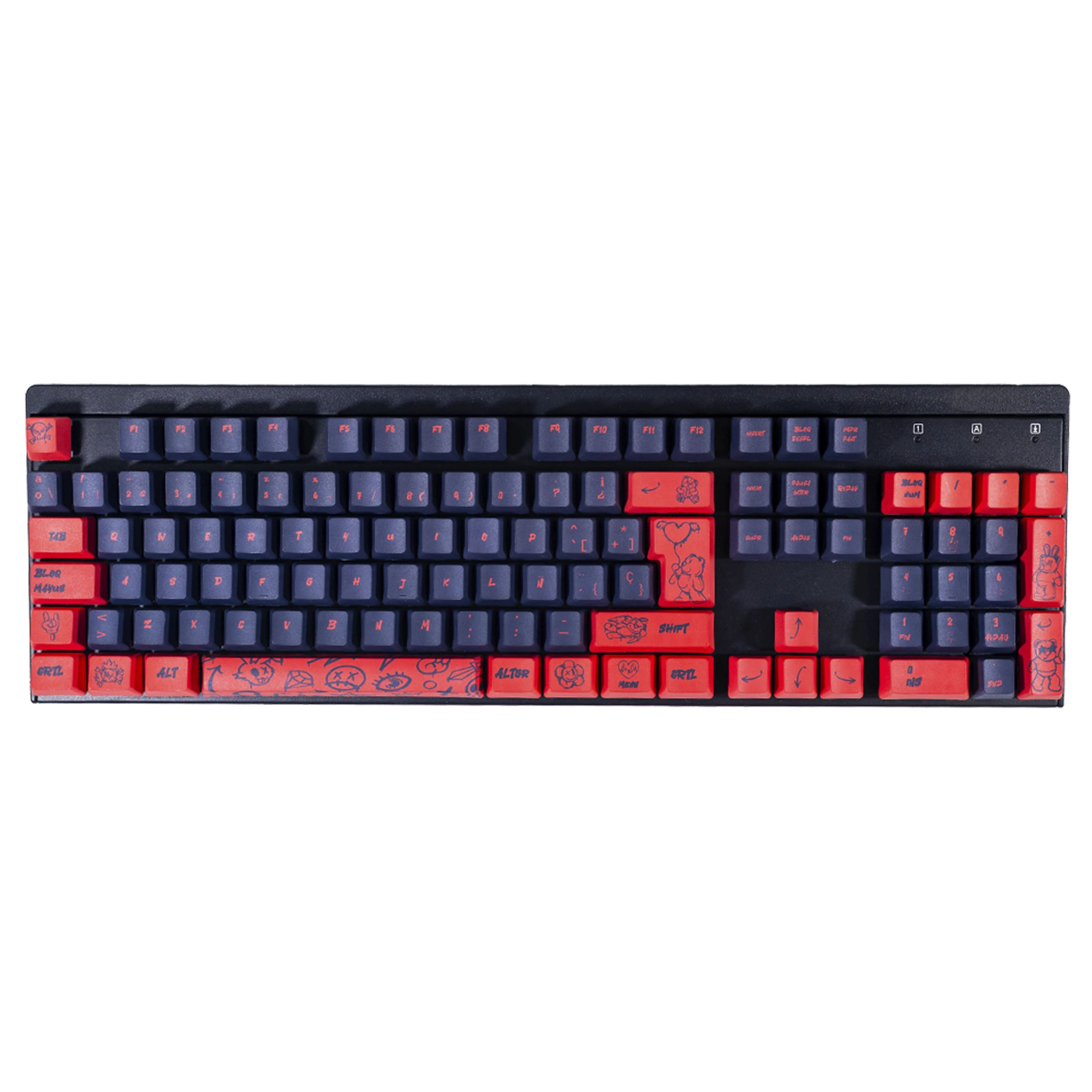 Nuestros diseños están pensados para teclados completos (100%), TKL (80%), compactos (60%), etc. con una distribución ISO Español estándar. En ocasiones, las marcas y fabricantes diseñan sus teclados en un formato distinto, añadiendo, quitando o desplazando teclas. Por ello, hay que tener en consideración el tamaño de nuestras teclas, ya que podría haber incompatibilidades a la hora personalizar tu teclado. Es importante observar la fila de la barra espaciadora y sus respectivas teclas de función.