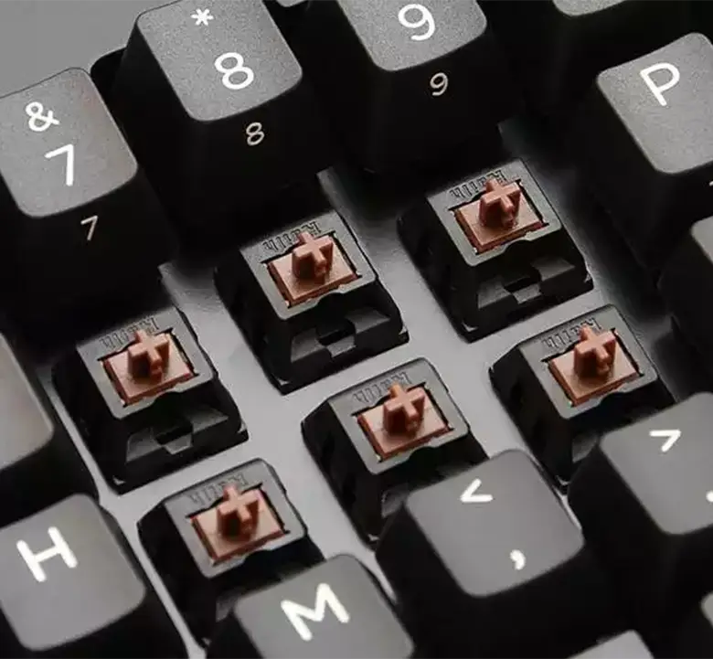 Al igual que ocurre con la distribución del teclado, cada fabricante y marca puede diseñar su teclado usando unos switches (interruptores) distintos a los más comunes. Nuestros sets de teclas están diseñados para encajar con todos los switches que se correspondan con el tipo estándar de Cherry MX o Gatheron. Estos se caracterizan por su vástago en forma de cruz (+) o [+]. Debido a los múltiples tipos de switches existentes es importante comprobar la compatibilidad de los mismos.